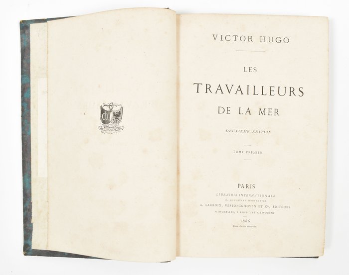 Victor Hugo - Les Travailleurs de la Mer - Parijs, Libraire Internationale/Bruxelles, Lacroix, 1866 - 2e. ed (hetzelfde jaar als de eerste) en vierde ed. - 3 delen. halfleer. Zeldzame vroege uitgave. Ex bibliotheca de verzamelaar en bibliofiel G.J. Honing, Zaandyk.