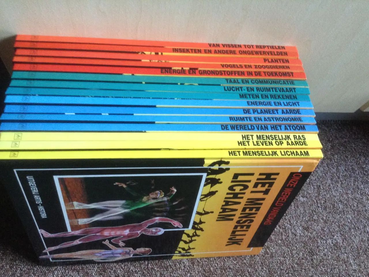 Boeken ; onze wereld vandaag ; 16 prachtige boeken ,leerzaam voor school studieboeken,prachtige illustraties met tekst mooie foto,s en grondige uitleg nr1/van vissen tot reptielen 1988 ; 36 blz nr2/insekten en andere ongewervelden 1988 ; 36 blz nr3/planten 1988 ; 36 blz nr4/vogels en zoogdieren 1988 ; 36 blz nr5/energie en grondstoffen in de toekomst ;1989 ; 36 blz nr6/taal en communicatie; 1989 ; 36 blz nr7/lucht en ruimtevaart; 1989 ; 36 blz nr8/meten en rekenen; 1989 ; 36 blz nr9/energie en licht 1989 ; 36 blz nr10/de planeet aarde 1989 ; 36 blz nr11/ruime en astronomie 1989 ; 36 blz nr12/de wereld van het atoom verkocht nr13/het menselijk ras 1988 ; 36 blz nr14/het leven op aarde 1988 ; 36 blz nr15/transport te land en te water 1993 ; 36 blz , nr 16/ bevolking en voedsel 1993 ; 36 blz., Nr 17/de oorsprong van het leven 1988 ; 36 blz. Elk boek kan afzonderlijk gekocht worden ;deze boeken zijn in het nederlands geschreven ; uitgeverij artis historia ; zeer leerzaam ook voor het school , een aanrader ,bekijk ook mijn andere advertenties komen halen of verzenden met ; bpost ,postnl of aan huis geleverd of een bpost of punt zoeken zo dicht mogelijk bij u woning en gaan ophalen of aan huis geleverd door bpost in belgie email ; [email protected]