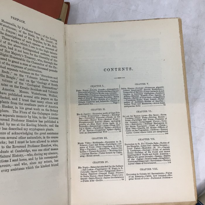 1. "Journal of reseraches into the natural history and geology of the countries updated during the voyage round the world of H.M.S. Beagle" door Charles Darwin - John Murray, London - 1905 nieuwe uitgave met illustraties - 15cmx13cm - conditie: goed, in origineel groen band, met frontispice en platen aanwezig, lichte slijtage aan platten