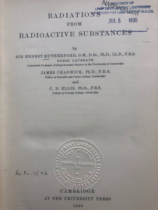 Boek van Charles Drummond Ellis, Ernest Rutherford en James Chadwick