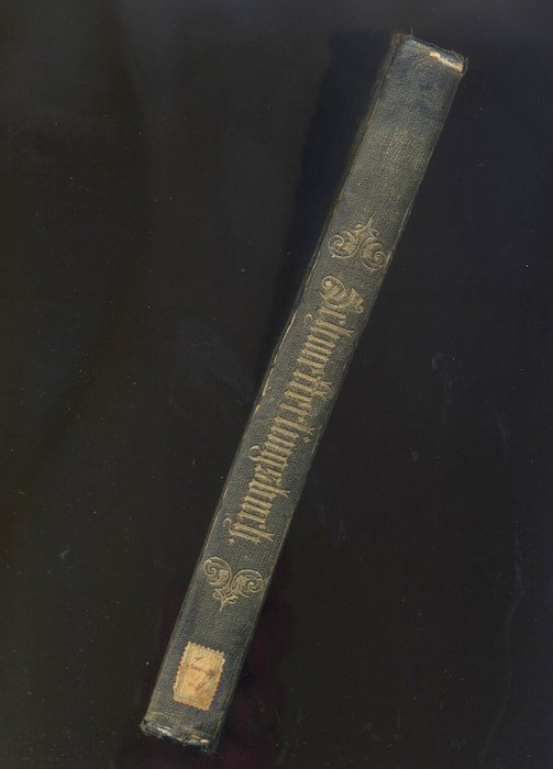 Kaft met ravelige hoeken. Rug deels gelijmd.