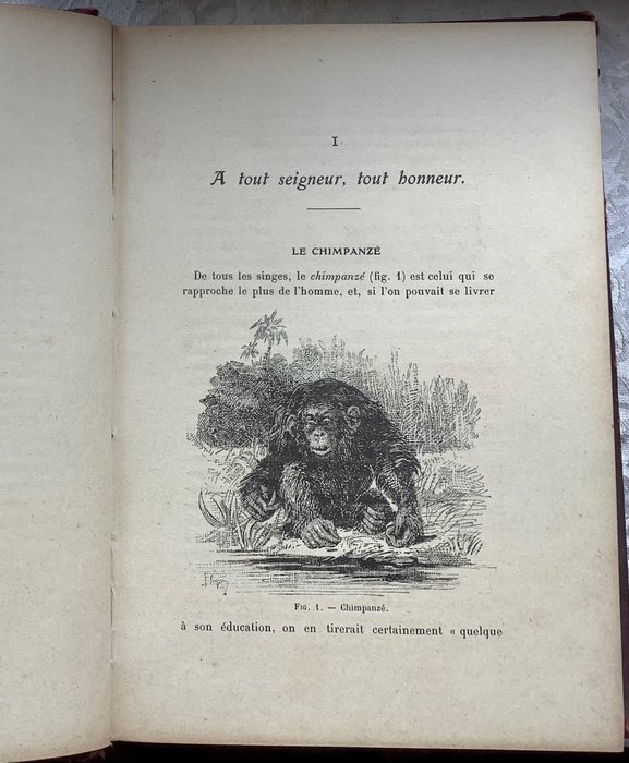 Apen en apen, anekdotische geschiedenis van apen door Henri Coupin. - studies van verschillende apenrassen, anekdotes, classificatie van apen - veel illustraties - 217 pagina's