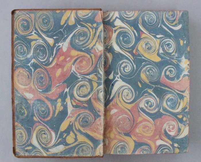 Contemporaine vollederen band, rug met 5 ribben versierd met vergulde bloemmotieven. Verzwakt bij de kopkap, wat wrijving op de planken, gerafelde hoeken.