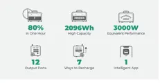 With our patented GridFlow technology, you can charge SuperBase Pro 2000 at up to 1800W from an adequate AC outlet or generator. A full charge is just two hours away.