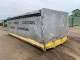 Gebruikte laadbak voorzien van aluminium schotten + schuifgordijn en schuifdak, afmeting ca. 7017x2480mm, met sjor-ogen. Prijs is inclusief slede + haakarmsysteem.