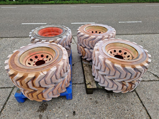 8 Outrigger volrubber non marking hoogwerkerbanden met 8-gaats velgen, maat banden 10-16.5, ET-maat -3.5, velgmaat 16.5x8.25
