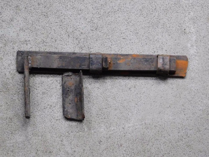 Voeg een extra laag van veiligheid en authenticiteit toe aan uw poorten of staldeuren met dit robuuste ijzeren schuifslot.