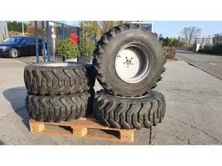 5 Nieuwe minishovelbanden op velg, 1 set van 4 Titan maat: 12-16.5 en 1 BKT maat: 31x15.50-15
