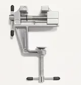 Kleine tafel bankschroef.Maat: 12cm hoog, 8cm breed, Bekken breedte 3cm.Voor tafelblad dikte maximaal 3,6cm.