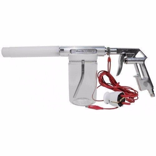 Poeder worden elektrostatisch geladen terwijl ze tussen een golvende Teflon-buis in de spuitmond van het pistool wrijven. Dit wekt statische lading op net zo als wanneer je met een ballon over je haar wrijft.