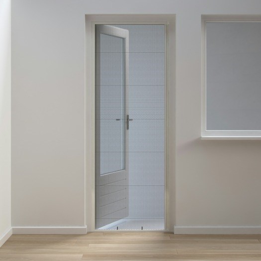 Bruynzeel De plisséhor voor deuren s700 is een in wit aluminium uitgevoerde plissédeur. Geschikt voor naar binnen en buiten draaiende deuren, montage in het kozijn. Met het opbouwkader is de deur ook op het kozijn te plaatsen. Bij een dubbele opstelling ook geschikt voor grotere openingen zoals dubbele deuren en schuifpuien. De plisséhor s700 is in de breedte en hoogte inkortbaar. Voorzien van een extra lage ondergeleider van 7 mm. De greepstijl is voorzien van een interne magneetsluiting