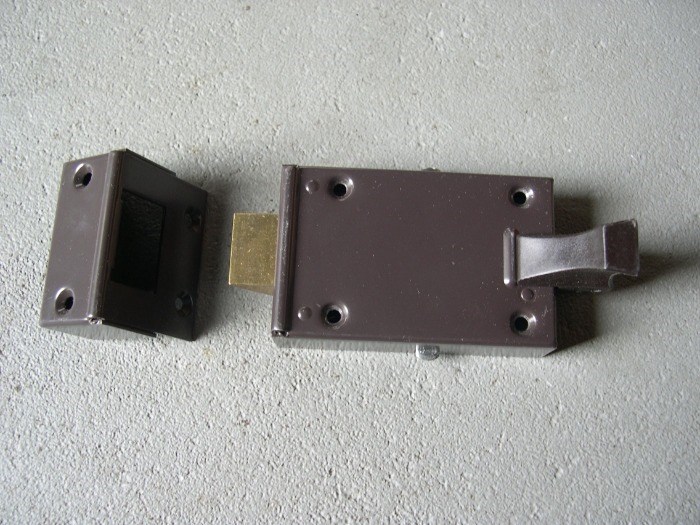 Opliggend voordeurslot voorzien van dag- en nachtslot vaste cilinder. Specificatie: - bediening dagschoot aan binnenzijde door trekknop, met blokkeermogelijkheid in ingetrokken stand door trekknop halve slag te draaien, en aan buitenzijde door sleutel, - rechthoekige messing nachtschoot, 1-toers - 20 mm, - bediening nachtschoot aan binnen- en buitenzijde door sleutel, - met wissel, - slotkast, staal, bruin gemoffeld, wordt meegeleverd, - vaste buitencilinder, messing vernikkeld, met afdekring en 3 nieuw zilveren cilindersleutels.