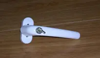 Raamkruk ( Tokyo) met sleutel kleur wit merk hoppe krukstift 7 mm afstand schroef gaten 43 mm 19,95