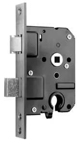 Veiligheids inbraakwerende insteek profielcilinderslot 55 mm SKG links als rechts bruikbaar compleet met inbraakwerende sluitkom maten voorplaat 17,5x 2,5 cm kast diepte 7,8 cm kasthoogte 12 cm doornmaat 5 cm kruk-pc gat 5,5 cm dagschoot is omkeerbaar L en R te gebruiken