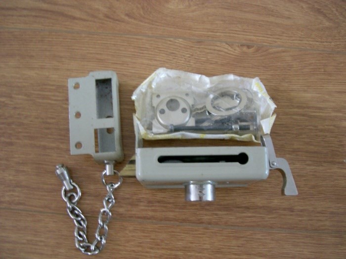 ( met Losse staartcilinder) compleet met 3 sleutel en afdek rozet, sluitkom met kierstand ketting, incl schroeven 30 mm diameter