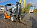 Ausa C150H ruwtwrreinheftruck, 4x4, bouwjaar 2007, sideshift, met 2-delige mast hefhoogte 2.66m, doorrijhoogte 2.01m, hefvermogen 1500 kg, met Nederlands kenteken, 4-cilinder Kubota motor 1289 afgelezen uren, 25.6 kW, het eigen gewicht is 2700 kg.