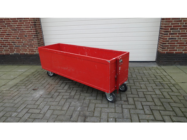 Bak/kist op 4x zwenkwielen waarvan 2x geremd