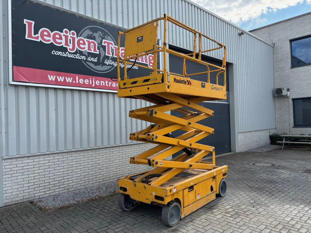 Haulotte Compact 10 elektrische schaarlift. Bouwjaar: 2008, afgelezen urenstand: 555, Werkhoogte: 10 meter. Uitgerust met: NON-marking banden, Platformverlenging, CE-markering, Ingebouwde acculader.
