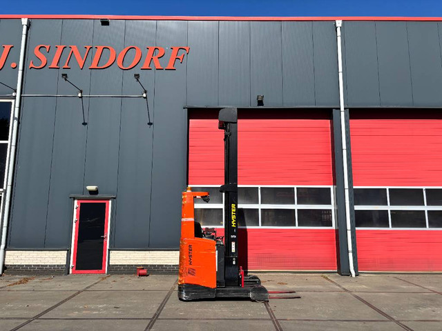 Hyster R1.6 1600kg reachtruck. Machine heeft een hefhoogte van 10,5 meter. De machine is uitgerust met een hoogte voorselectie.