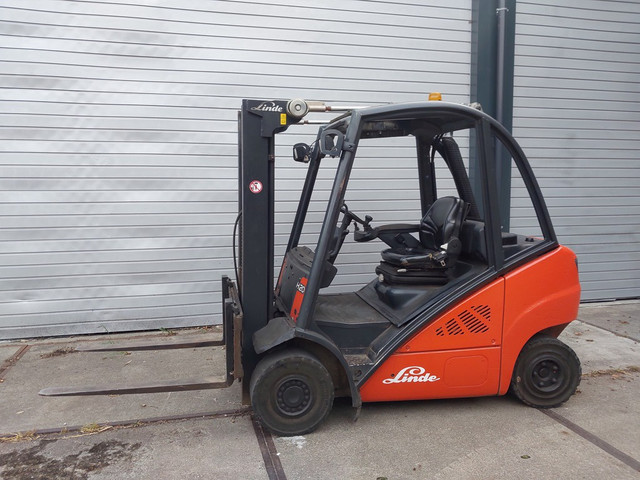 Zeer nette en goede Linde 2.0 ton diesel heftruck.triplomast 480cm hoog en met sideshift en freelift!!Weinig uren maar 6214 uur!!Nette banden.Lepels 120cm lang!Foto's spreken voor zich!bouwjaar 2010!!