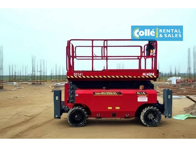The Magni DS 1418 RT diesel scissor lift offers robust 4WD off-road capabilities and a working height of 14.3 m.