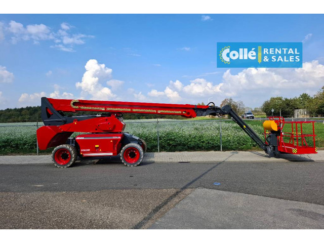 With a working height of 22.5 meters, a horizontal outreach of 17.28 meters, and a platform capacity of 454 kg, this model delivers exceptional results across all terrains thanks to its 4WD drive, oscillating axles, and hydrostatic transmission.