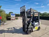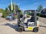 Nissan 1.8 ton LPG, bouwjaar 2010, met full free lift triplomast hefhoogte 4.75m, doorrijhoogte 2.13m, sideshift, volrubber banden, met 4-cilinder Nissan motor 8848 afgelezen uren, 41.5 kW, compleet met werkende verlichting, het eigen gewicht is 3190 kg.