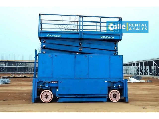 High-performance Omega NS260 diesel scissor lift with a 26.5 m working height and 600 kg platform capacity.
