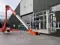 Het eerste mastdeel kan recht omhoog zodat de machine ook op hoogte een groot zijdelings bereik heeft.