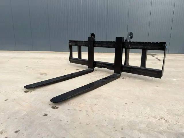 Unused wheelloader forks with Volvo / ISO / Lundberg quick coupling system suitable for Volvo L70. The length of the forks are 1.60 mtr. The width of the pallet frame is 2.40 mtr and the maximum capacity is 8000 kg.