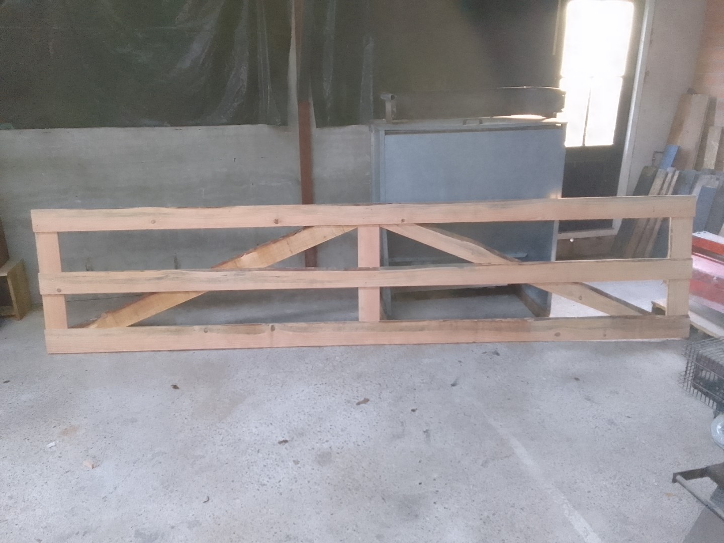 Robuuste landelijke houten land weide hek 450 cm lang 100 cm hoog.