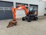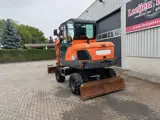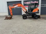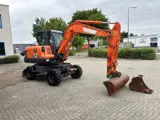 Doosan DX55WK Mobiele graafmachine. Bouwjaar: 2015. afgelezen urenstand: 5.605, Gewicht: 5.550 kg. Uitgerust met: Airco, Snelwissel, 2 bakken, Werklampen, CE-certificaat, Yanmar motor, Monogiek, Extra hydrauliek.