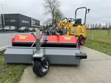 Hemach veegmachine wordt gebruikt voor het schoonvegen van straatwerk of andere oppervlakte. De veegmachine wordt met een rolbezem hydraulisch aangedreven door de minishovel. De breedte van de veegmachine is 150 cm, 180 cm of 225 cm aansluitend voor elk type minishovel. De Hemach veegmachine wordt geleverd inclusief opvangbak, mechanische schuinstelling (60 graden en vangbak ledigen doormiddel van een touw. De minishovel moet een minimale olie opbrengst van 25 L/min hebben om de rolborstel te laten werken.