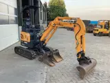 Nette Hyundai R17Z-9AK minigraver met weinig draaiuren. Complete machine met in breedte verstelbare onderwagen, extra functie met proportionele bediening, hydraulisch snelwissel en 3 bakken. De canopy is afneembaar en de machine beschikt over 2 rijsnelheden.
