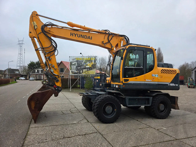Hyundai Robex 160W-9A, 2015, hoofdverstelgiek, hydraulische snelwissel CW30/40, brede bak, sloop/sorteer- en hamerfunctie, met 6-cilinder Cummins motor 12211 afgelezen uren, 115 kW, banden dubbel lucht maat: 315/80R22.5, het eigen gewicht is ±16700 kg.