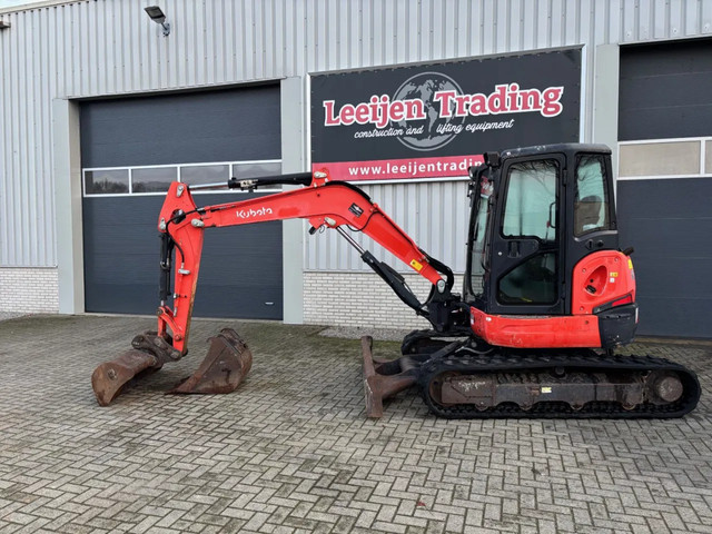 Kubota U48-4 Minigraafmachine. Bouwjaar: 2016, Afgelezen urenstand 5.049, gewicht: 4.775 kg. Uitgerust met: Snelwissel, 2x bakken, Blad, Rubberen rupsen, Werklampen, CE markering.
