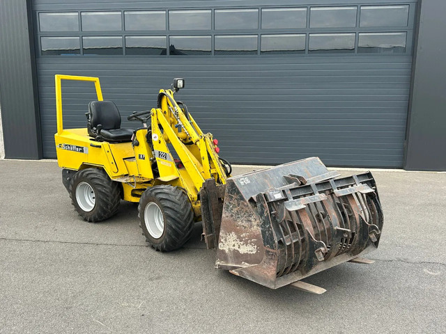 Schäffer 222, Bouwjaar 2001, Draaiuren 2923, werkverlichting, Met trekhaak, Met palletvork, puinbak, dichte bak.