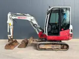 The Takeuchi TB230 is a robust mini excavator designed for superior performance on the job site. Powered by a Yanmar 3TNV88F-EPTB engine delivering 18.2 kW, it complies with EPA and CE standards. The machine features a mono boom with a stick measuring 1.45m in length and a mechanic quick release system for efficient attachment changes. It includes a ditch cleaning bucket with a width of 1.25m and an additional digging bucket with teeth, available in widths of 0.60m and 0.30m. Equipped with piping for a hammer and an AM/FM radio, this excavator ensures excellent operational efficiency and operator comfort. The TB230 is in good and clean condition, reflecting its diligent maintenance since its manufacture in 2017. With a size of 4.30 x 1.46 x 2.50m and a weight of 2875 kg, this Japan-made mini excavator promises reliability and productivity.