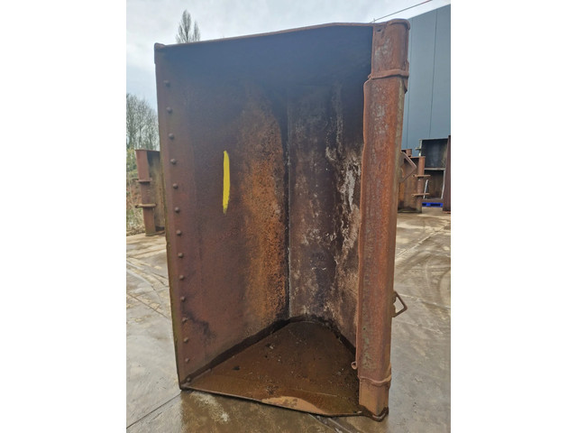 Dichte wielladerbak met Volvo snelwissel klein, 2.24m. breed, maat hart-hart breedte snelwissel 0.99m, maat hart-hart vertikaal 0.43m.