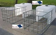 Deze vaten voorzien van kraan en deksel staan in een stevige kooi gegalvaniseerd en staan op kunststof pallet.
