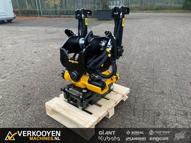 Nieuwe Engcon EC209 draaikantelstuk passend aan een Kubota KX080-4. Voorzien van SS9-systeem met hydraulische QS45 snelwissel.