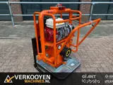 Hamevac VHU700BL Vacuumunit op benzinemotor BL = BLowervacuum -> Hierdoor ook poreuze producten te tillen Eigen gewicht unit : 60kg 220m3 vacuum Max hefvermogen: 700kg De unit voor zware poreuze tegels / betonplaten De VHU-700-BL maakt gebruik van Blower vacuüm (Laag vacuüm). Zonder al te technisch te worden betekent dit in het kort dat een VHU-700-BL een lager percentage vacuüm haalt (-200 mbar/20%) maar wel veel luchtverplaatsing heeft (belangrijk bij poreuze producten). De unit geeft bij 20% al groen aan (veilig om te tillen) en is ook in staat de continu aangevoerde "leklucht" af te voeren en het product dus vast te houden. Probleemloos leggen tot 700Kg (Beton-) producten leggen tot 700 Kg? Met de VHU-700-BL kan dit probleemloos. Met zuignappen variërend tussen 30 kg. en 700 kg. hefvermogen is er voor ieder product tot 700 kg. een passende zuignap. Specifieke toepassing: Een belangrijke oorzaak voor het gaan produceren van de VHU-700-BL is het feit dat een aantal gerennomeerde betonfabrikanten zijn begonnen met het maken van extra zware maar poreuze betontegels. Het gewicht van de tegels kan variëren tussen de 350kg en 700kg. In de praktijk blijkt dat deze tegels te poreus zijn voor bijvoorbeeld de VHU-1000-B en de VHU-3000 (beiden hoog vacuüm) Zuignappen: Er is een groot gamma aan zuignappen beschikbaar voor deze vacuümunit. Tussen 30 kg en 700 kg is er vrijwel voor elk op te nemen product een geschikte zuignap. Hij is uitermate geschikt voor poreuze producten, maar uiteraard kunnen ook andere producten tot 700 kg met deze vacuümunit verwerkt worden. Elke VHU-700-BL is standaard uitgerust met een snelwissel systeem voor de zuignappen. In combinatie met een machine: De VHU-700-BL wordt gebruikt in combinatie met een machine. Met het standaard aanwezige hijsoog kan hij makkelijk aan diverse machines bevestigd worden. Deze vacuümunit is ook standaard uitgerust met extra valbeveiliging. 2 haken waarmee met behulp van een ketting of sjorband de lading extra gezekerd kan worden bij het werken boven de 1,5 meter. Comfort en Veiligheid: Een handige stuurhandgreep met aanwezige losklep zorgt ervoor dat het product eenvoudig gepositioneerd kan worden en gelost. Vanaf dezelfde stuurhandgreep is er direct zicht op de grote vacuümmeter zodat altijd helder in beeld is of het veilig is om te tillen. Tot slot is de VHU-700-BL standaard uitgerust met een snelwisselsysteem voor de zuignappen.