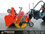 Adler K600 150cm veegmachine ten behoeve van uw Giant / Norcar / Avant minishovel. Kan tevens ook aan een Norcar, weidemann of schaffer gebouwd worden. Onderstaand de voordelen ten opzichte van de concurrentie: - Grotere borsteldiameter van 600mm - Vegen met de standaard hydraulische ledigingsbak open mogelijk doordat scharnierpunt hoger zit - grotere inhoud opvangbak - Borstelverstelling is traploos met draaispindel. - De borstelverstelling werkt schuin naar de ledigingsbak toe zodat bij borstelslijtage de borstel ook naar de ledingsbak toe beweegt. - Degelijker plaatmateriaal, standaard gepoedercoat - 2 zware zwenkwielen 250mm - Standaard naloopbeveiliging (beschermt uw hydraulische aandrijving) Voor deze Adler veegborstel is ook een zijborstel en watersproei-installatie leverbaar.