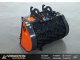 Cangini VRC 60 CW10 zeefbak / screening bucket. Zeeffractie van 0-25mm Olieflow benodigd 60-90 ltr/min Aantal rollen: 4 Zeefcapaciteit: 32 m3/u NIEUW MODEL! De VRC-zeefmachine is ontworpen voor het sorteren en scheiden van diverse materialen die afkomstig zijn van sloop- of graafwerkzaamheden, direct op locatie. De VRC Cangini zeefbak onderscheidt zich door zijn hoge productiviteit dankzij het grote aantal assen (minimaal 4 per model), bestaande uit eenvoudig te vervangen schijven en in een boog geplaatst om het zeefoppervlak te vergroten, in plaats van plat zoals bij gangbare zeefmachines op de markt. Zelfs het kleinste model heeft minimaal vier zeefassen, gerangschikt voor een hogere productie per uur. Bovendien zorgt de VRC zeefbak, dankzij het getande profiel, voor een eenvoudige vulling van het te zeven materiaal. De te selecteren materiaaldikte kan variëren van 0-20 mm tot 0-35 mm. Het onderhoud van de zeefmachine is nog eenvoudiger dankzij: Automatische kettingspanning Centrale lagersmering Eenvoudige vervanging van de enkele as Verkrijgbaar in zes modellen voor elk type graafmachine, minigraafmachine en graaflaadmachine van 2,5 tot 22,0 ton.