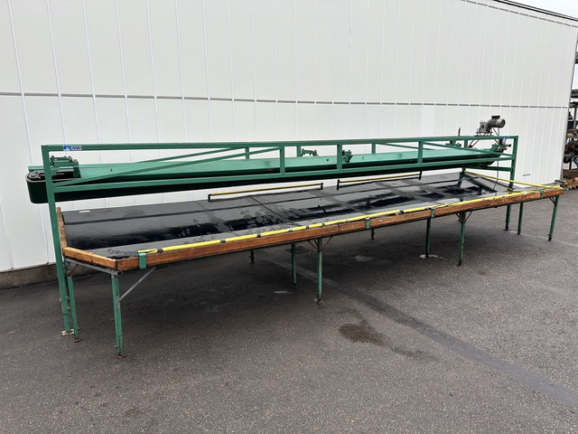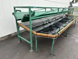 Sorteermachine met twee verstelbare wijkende banden en afpaktafel. Door de verstelbare opening tussen de banden valt het product op het juiste moment uit, waardoor snel en nauwkeurig op maat gesorteerd wordt.