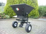 - De strooier is uitgevoerd met een vierkante gepoeder coatte stalen bak met een inhoud van 160 liter en heeft een verstelbare trekhaak met een kogelkoppeling.