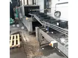 Elpress krat reinigingsmachine, twee Mafo droogunits en bijbehorende transport-, ingooi-, bocht- en afpakbanden, kantelinrichting, heetwaterketel en boiler.