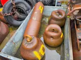 Partij diverse stalen sloopkogels / beulen: sloopkogel 4 weegt 1400 kg, sloopkogel 7 weegt 726 kg, sloopkogel 8 weegt 810 kg, sloopkogel 9 weegt 830 kg, nummer 10 weegt 820 kg.