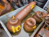 Partij diverse stalen sloopkogels / beulen: sloopkogel 4 weegt 1400 kg, sloopkogel 7 weegt 726 kg, sloopkogel 8 weegt 810 kg, sloopkogel 9 weegt 830 kg, nummer 10 weegt 820 kg.