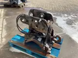 Eurosteel kantelstuk, afkomstig van een Atlas 160. Pendiameter 60 MM, hartmaat van de gaten 290 MM, tussenmaat 275 MM. Inbouwhoogte circa 54 CM, voorzien van hydraulische wig bediening en hijshaak.
